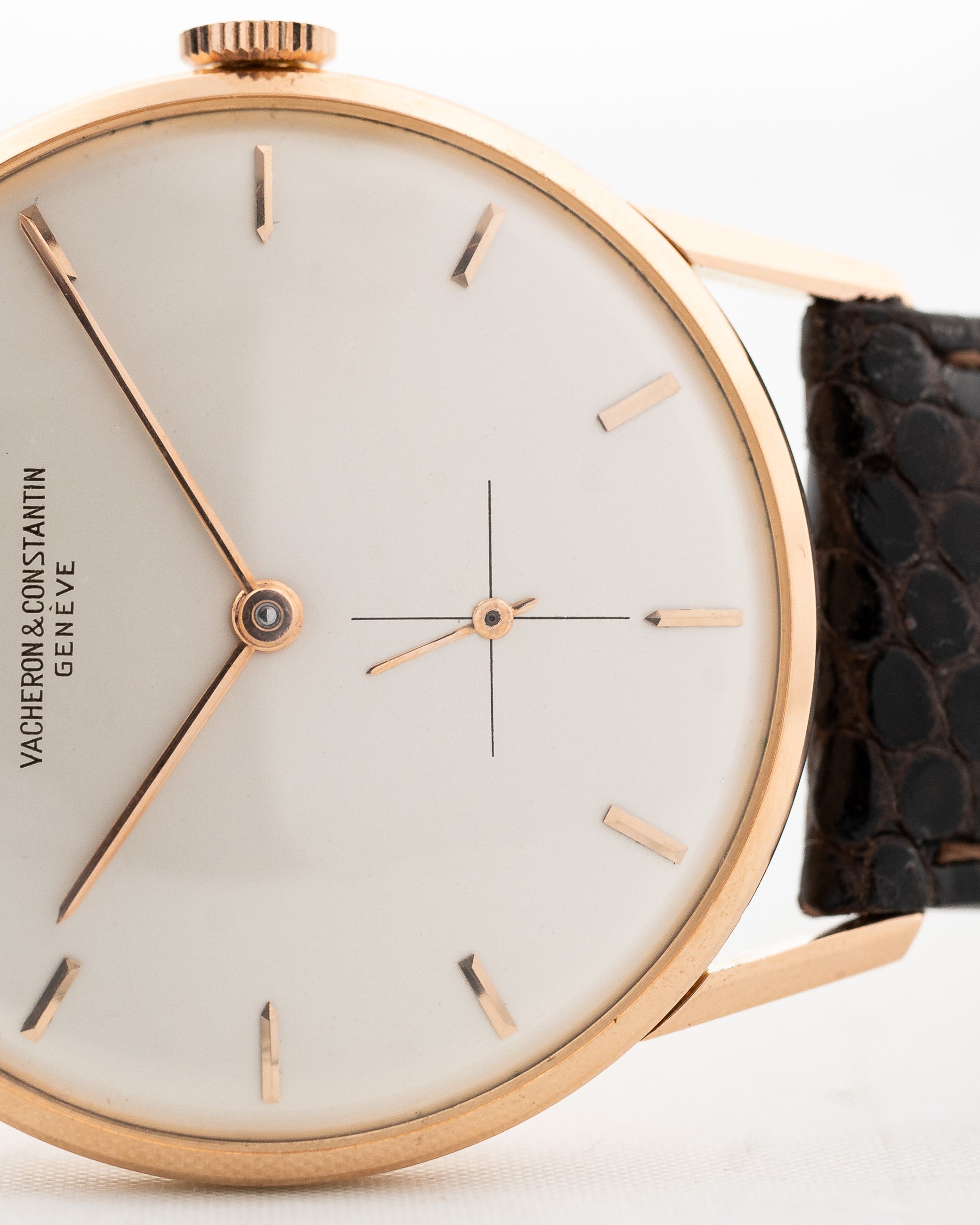這款 18K 玫瑰金江詩丹頓 Calatrava 禮服腕錶來自 1960 年代,做工精美。