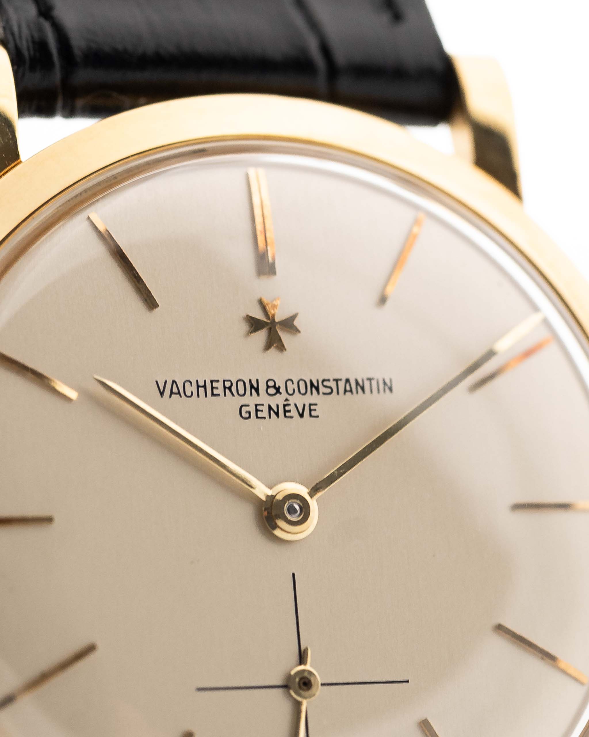 Vintage Vacheron Constantin 4667 Patrimony 腕錶,1956 年製造,32 毫米 18K 玫瑰金錶殼,銀色錶盤,手動上鏈機芯,黑色皮錶帶。
