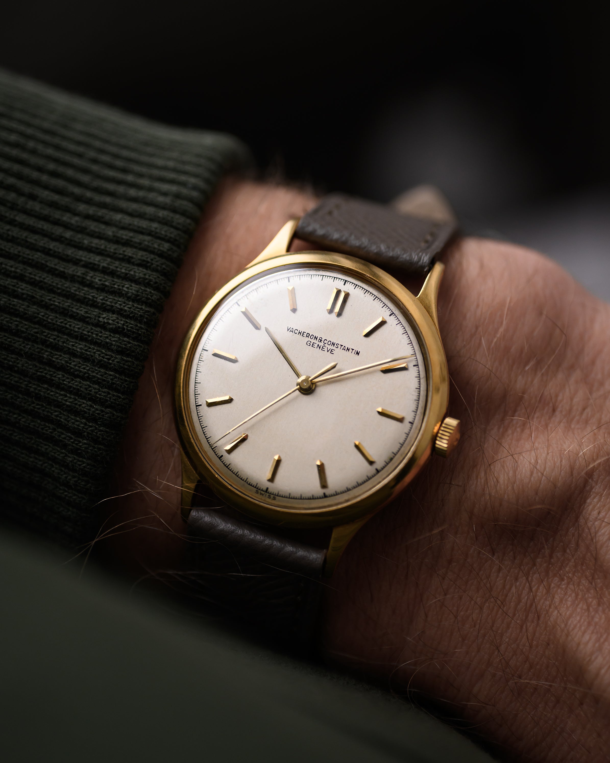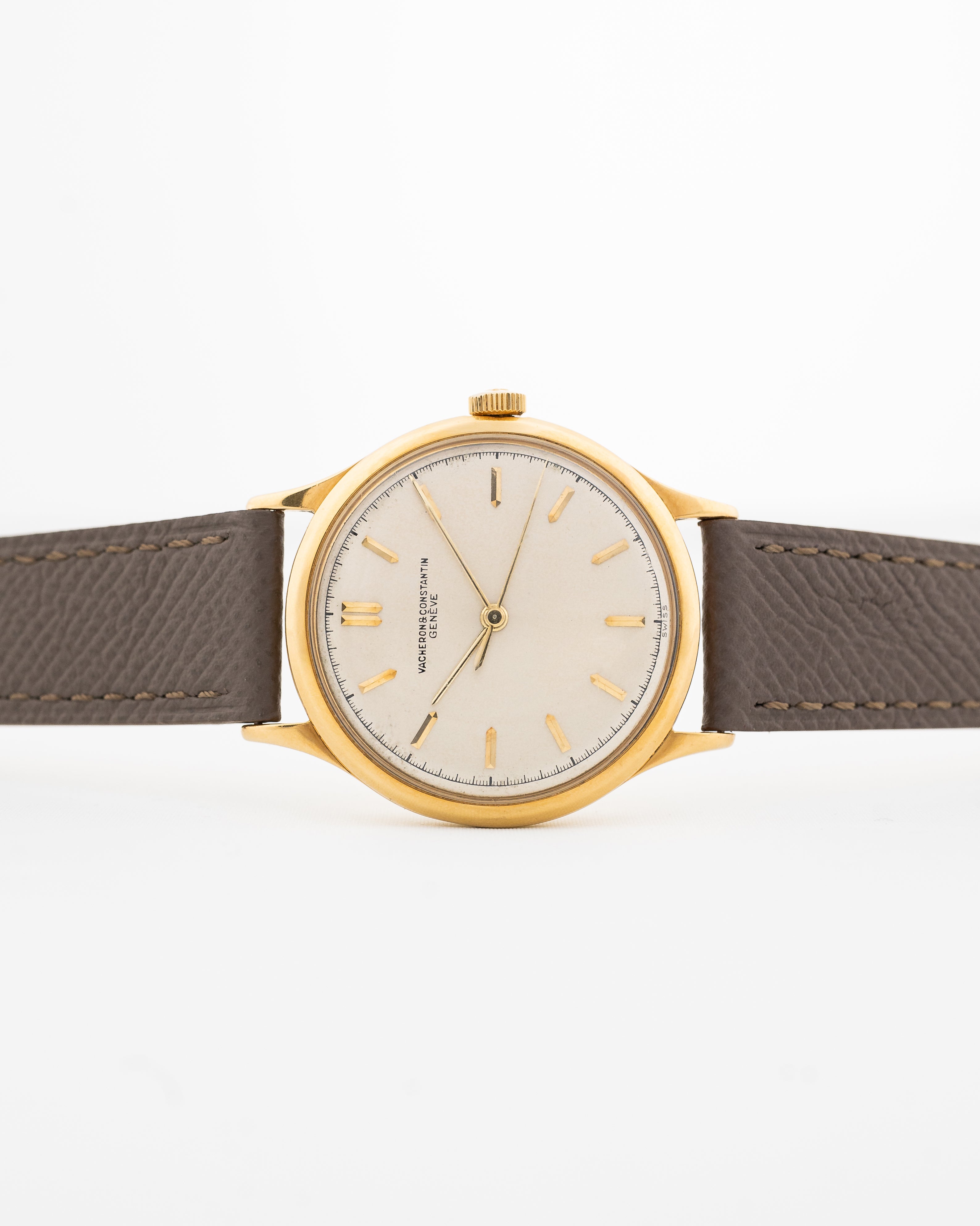 這款江詩丹頓35毫米黃金腕錶是1950年代的傑作。這款腕錶擁有白色/銀色錶盤,搭配鑲貼的黃金時標、黃金指針和美麗的分針軌道。時標的細節和簡潔錶盤的優雅,很少有錶款能做得如此出色。這是 VC 正裝腕錶的經典之作,時、分、秒指示簡單,錶殼採用 18K Spillmann 材質。