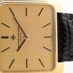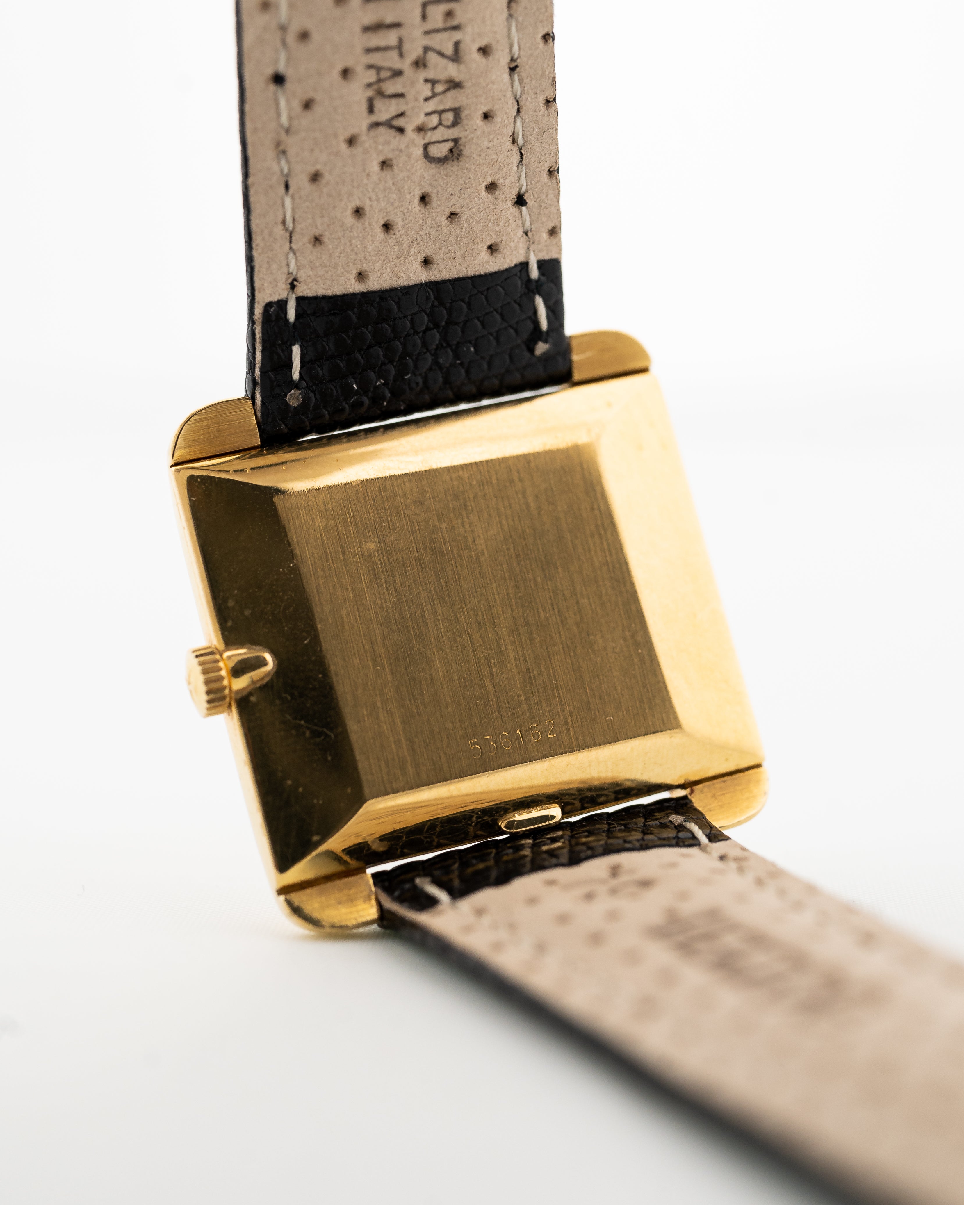 這款 18K 黃金江詩丹頓正裝腕錶採用 1970 年代的坦克式設計,做工精美。這款特別的作品以其精美的 18K sigma 表盤、鑲貼的江詩丹頓標誌以及堅固的未拋光 18K 黃金錶殼而著稱。