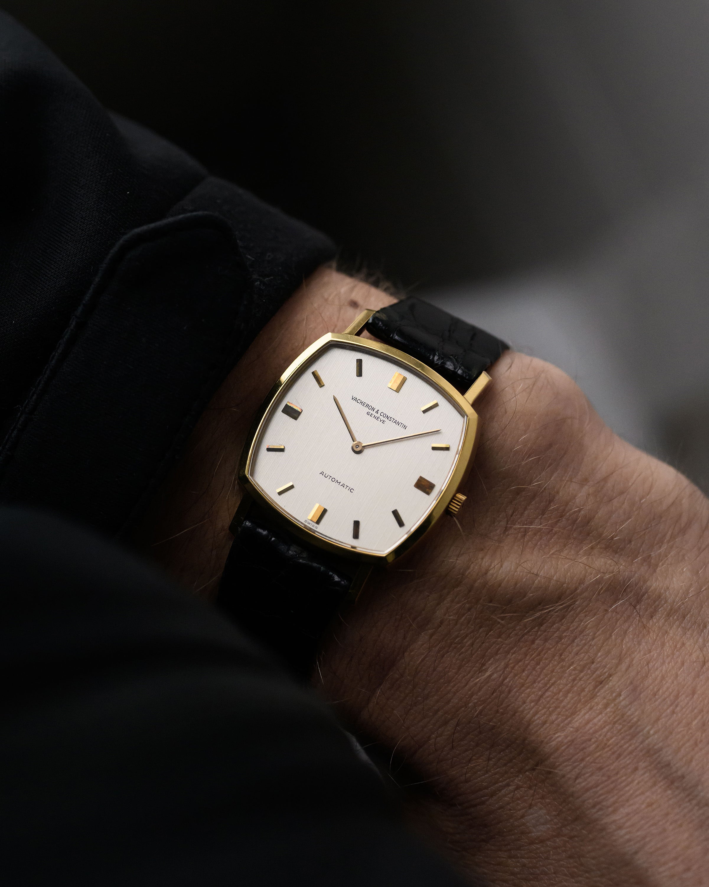 這款 18K 黃金江詩丹頓正裝腕錶採用 1991 年製作的 TV 形錶殼設計,做工精美。這款特別的腕錶以其美麗乾淨的白色麻布錶盤、設計精巧的 18K 時標以及堅固的 18K 黃金 TV 形金錶殼而著稱。