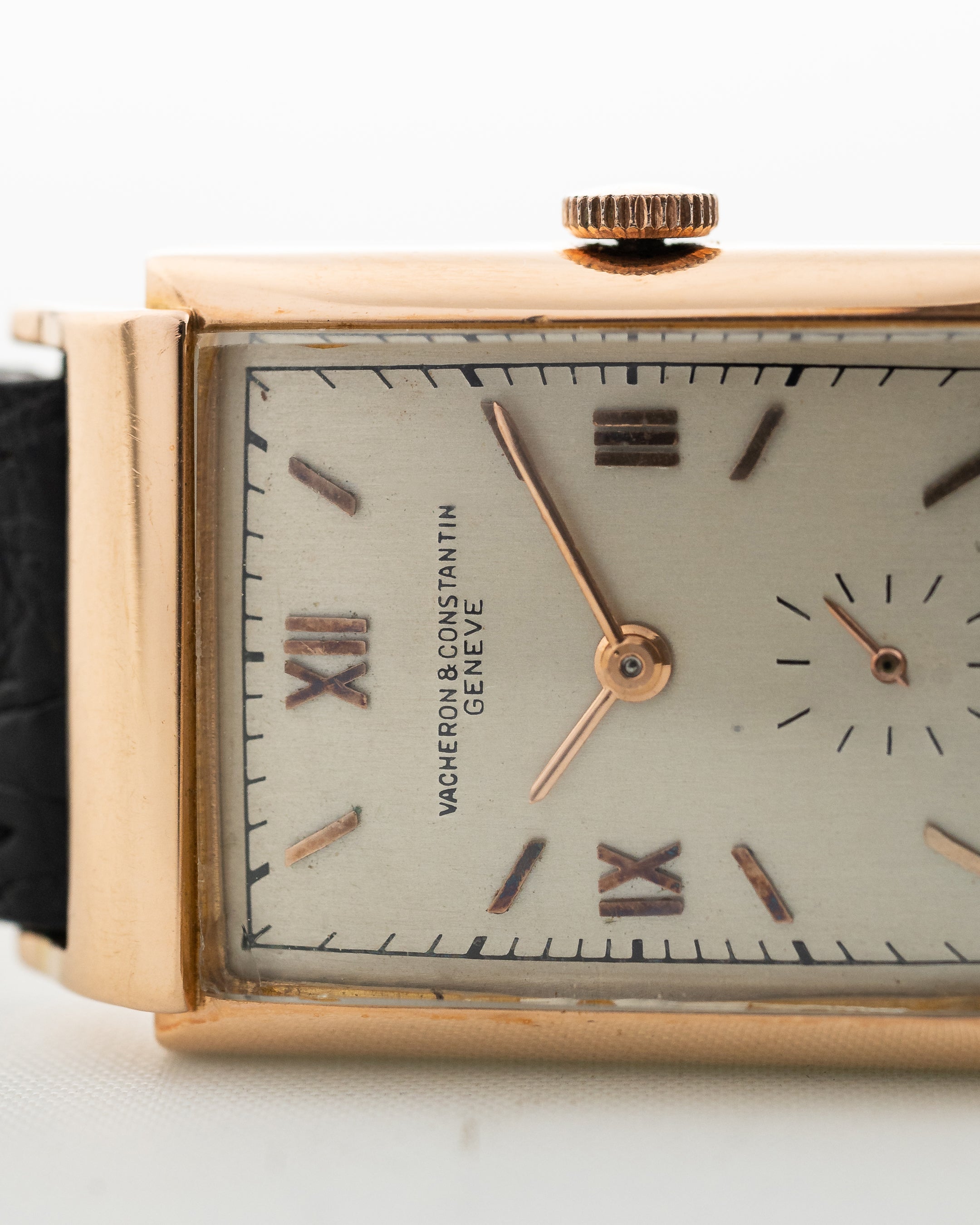 這款江詩丹頓長方形禮服腕錶來自 1944 年,做工精美,錶盤設計驚人,細節之多,難以一一盡錄。
