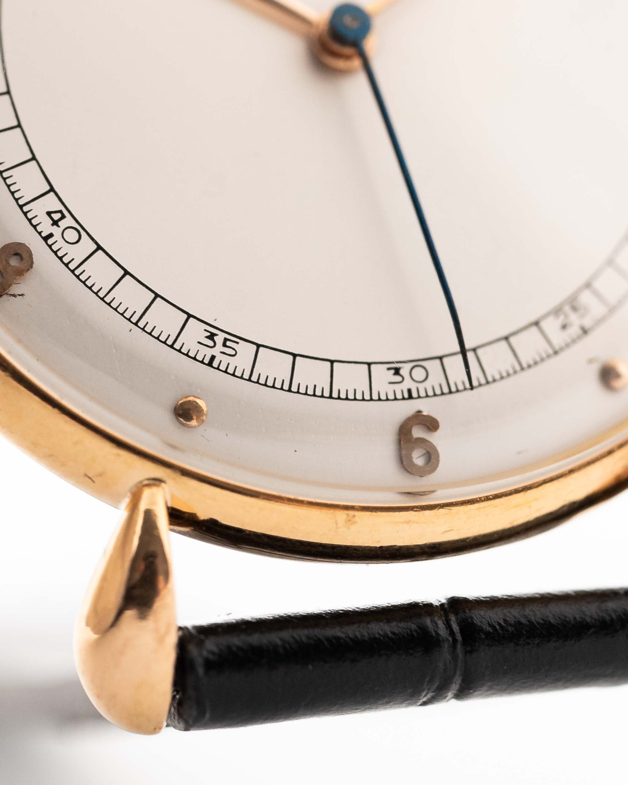 這款江詩丹頓Teardrop腕錶來自1940年代,是外形與比例的傑作,是日內瓦製錶黃金時代的真正體現。18K玫瑰金精心雕琢的水滴形錶耳與錶殼渾然天成,賦予腕錶既富建築美感又不失浪漫氣息的輪廓,令收藏家一見傾心。