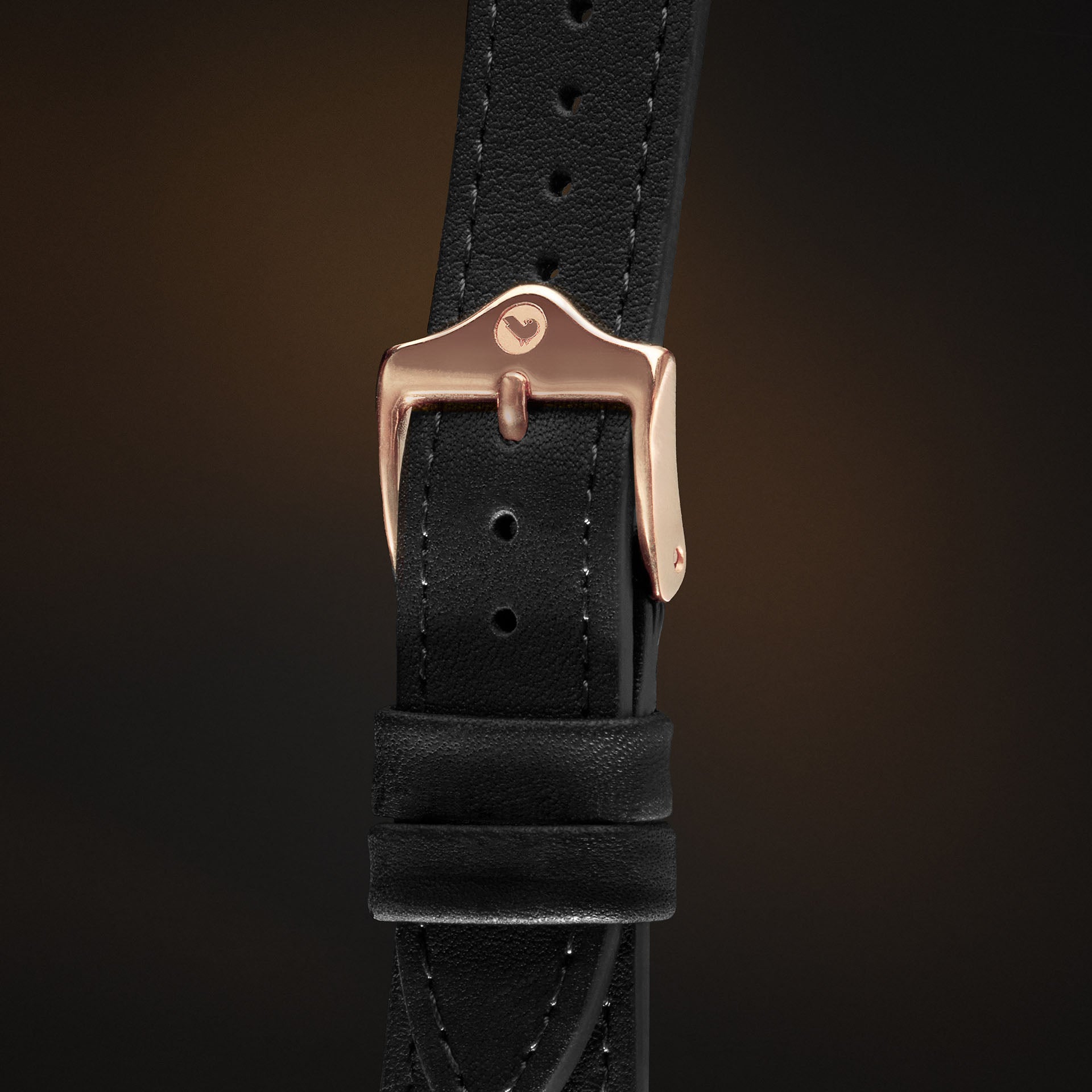 手工製作精巧,14 毫米弧形不銹鋼表扣有金色、玫瑰金色和鋼色可供選擇。靈感來自經典時計的精緻美學,精細雕刻的 GOLDAMMER 標誌反映了我們對細節的執著。