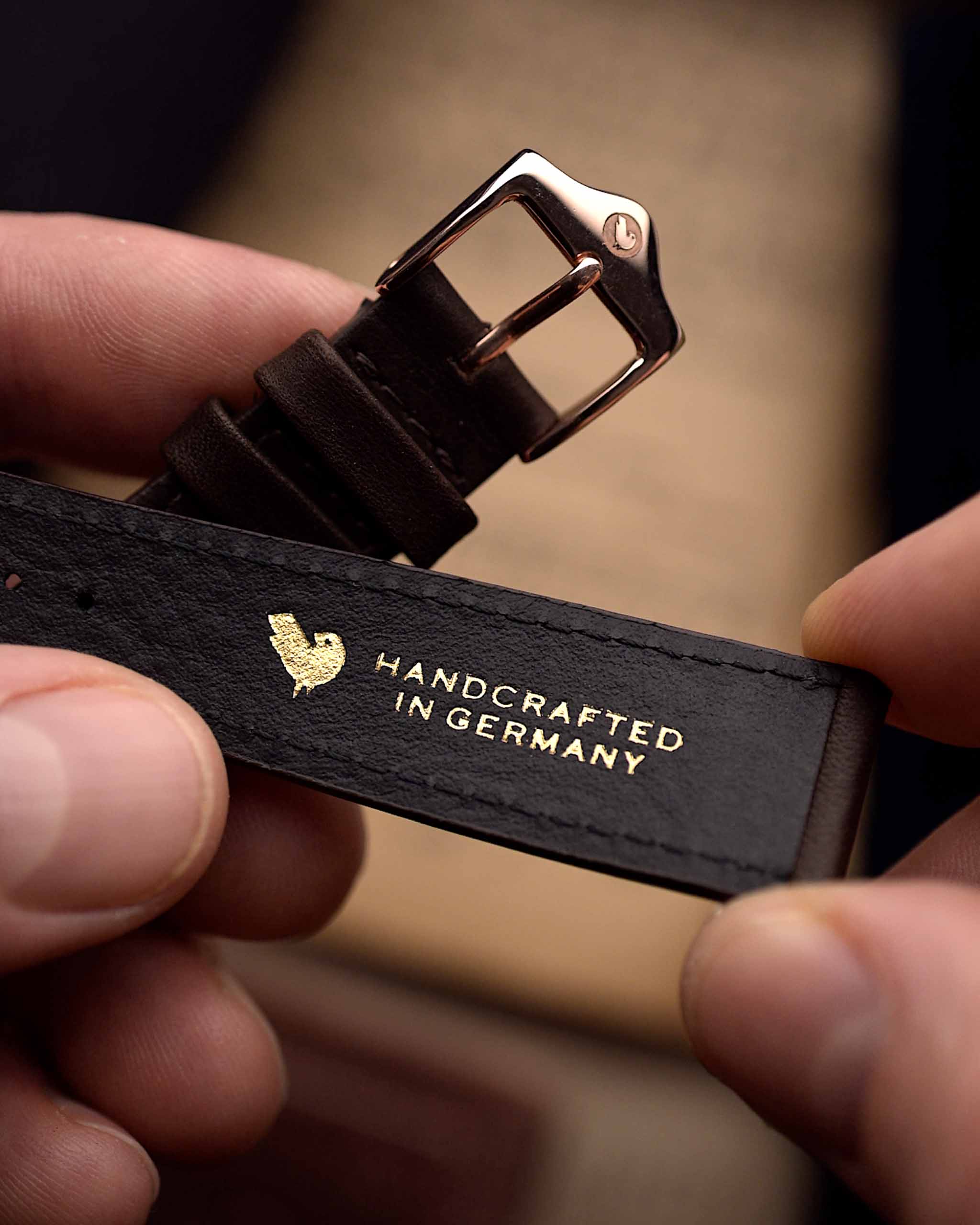 Fluco 在德國手工製作優質錶帶已超過 60 年,只使用精挑細選的歐洲皮革。每條錶帶都經過 50 多道嚴謹的工序,許多工匠都擁有超過 20 年的經驗,以確保卓越的工藝。
